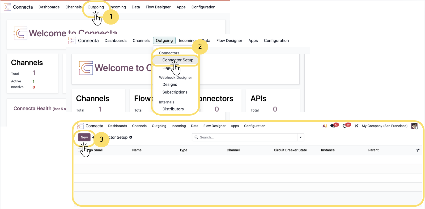 2. From the Outgoing dropdown menu, click on Connector Setup under the Connectors section.