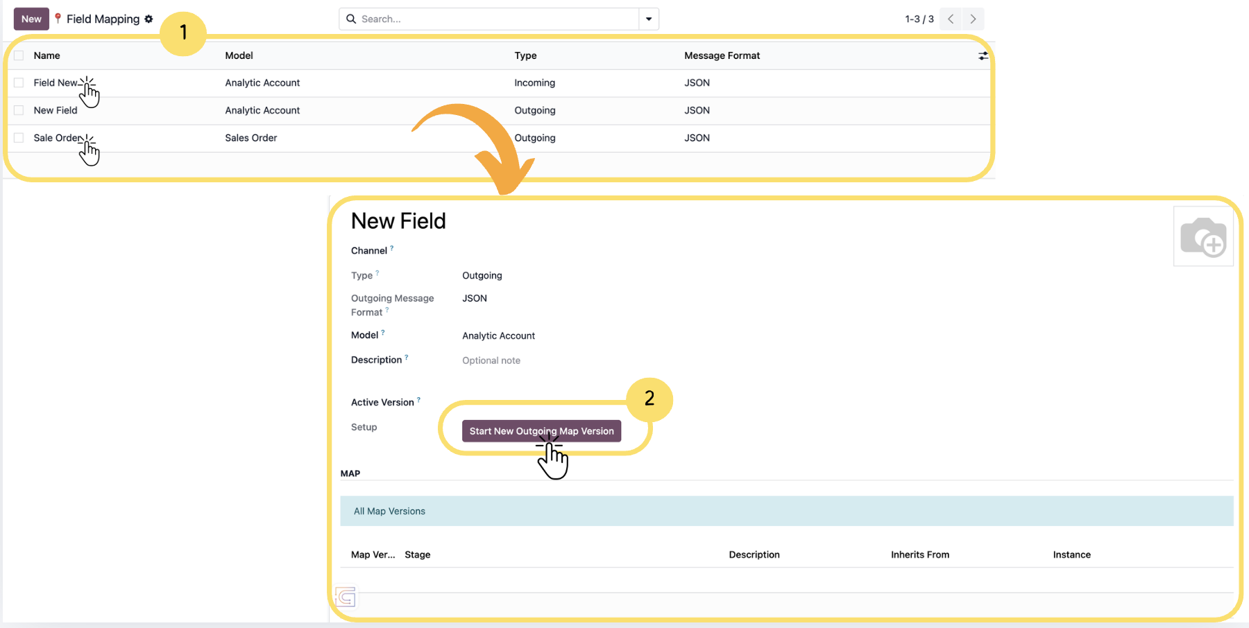 2. In the Setup section, click Start New Outgoing Map Version to create a new mapping version where you can configure the field mappings.