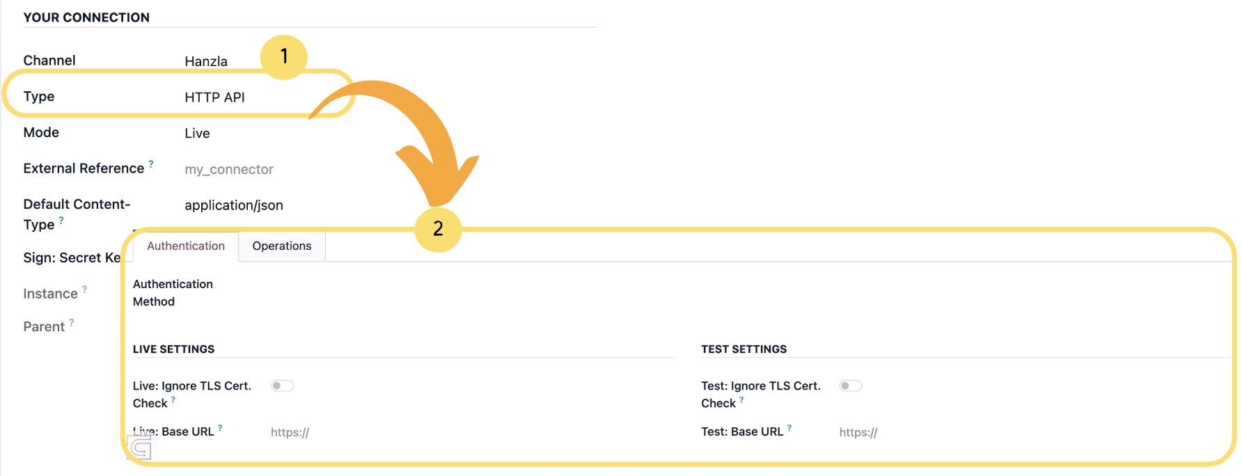 After selecting the appropriate type, complete the required settings and use the available connection checks to verify that the connector is working correctly in both Test and Live modes before proceeding.