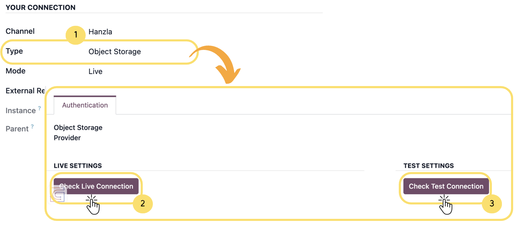 3. Click Check Test Connection to test the connection using test credentials before going live.